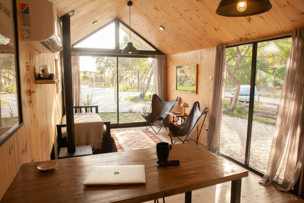 El equilibrio perfecto entre la naturaleza de campo y mar con diseño, arquitectura y arte. Refugio le llamamos a nuestras unidades de arquitectura modular pensadas para una vida simple y consciente. Tienen 45 M2, incluyen dormitorio, baño, cocina y espacio social. Están cómodamente equipados y pueden dormir hasta 4 personas. También tienen jardín privado con fogonero y cómodos sillones.
