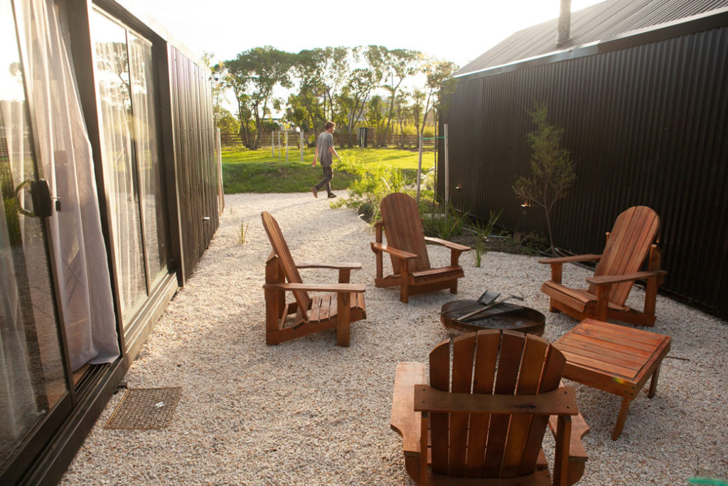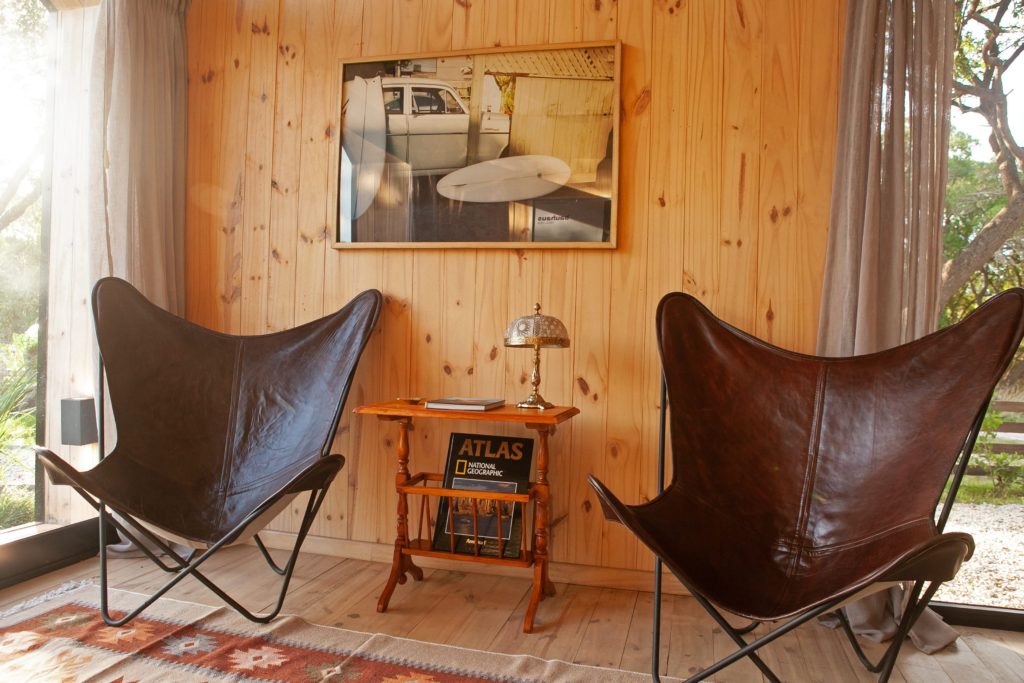 Jardín privado con cómodos sillones en la puerta de cada refugio pensadas para chillear junto a un fuego.